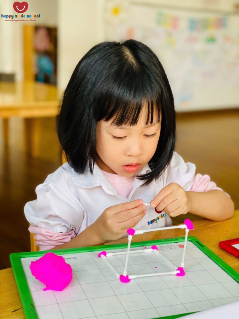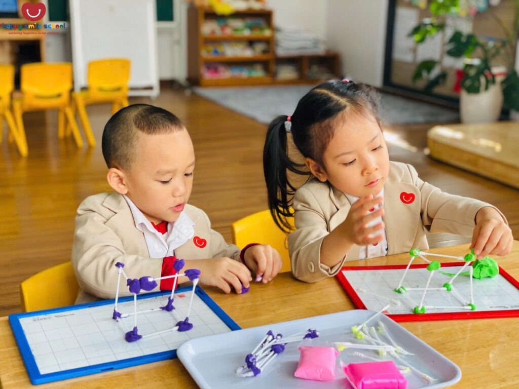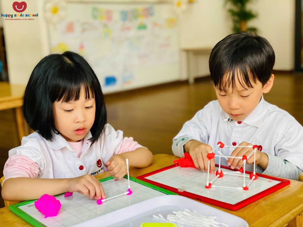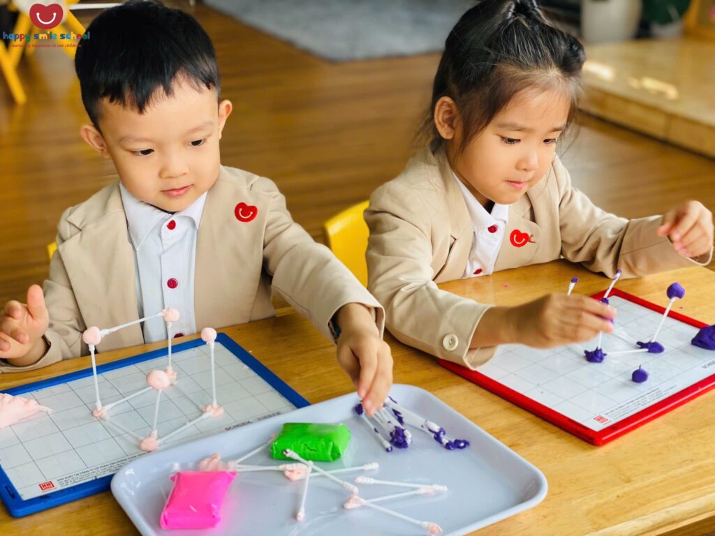 Quá trình tạo hình giúp trẻ quan sát, thử nghiệm và điều chỉnh để các hình khối đứng vững và đúng cấu trúc. Mỗi sản phẩm là kết quả của sự tập trung, khéo léo và tư duy logic của các con.