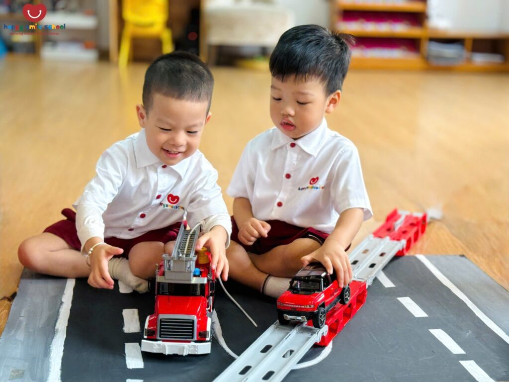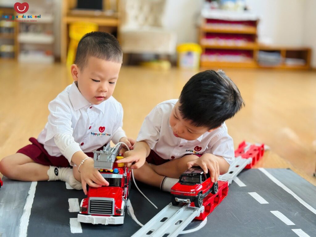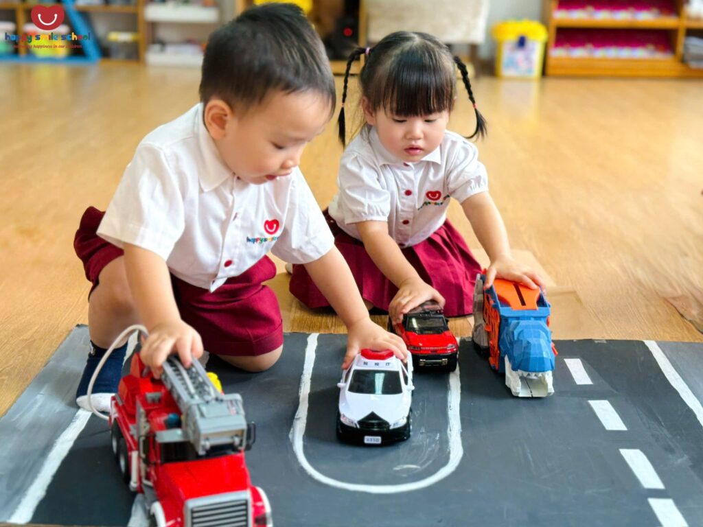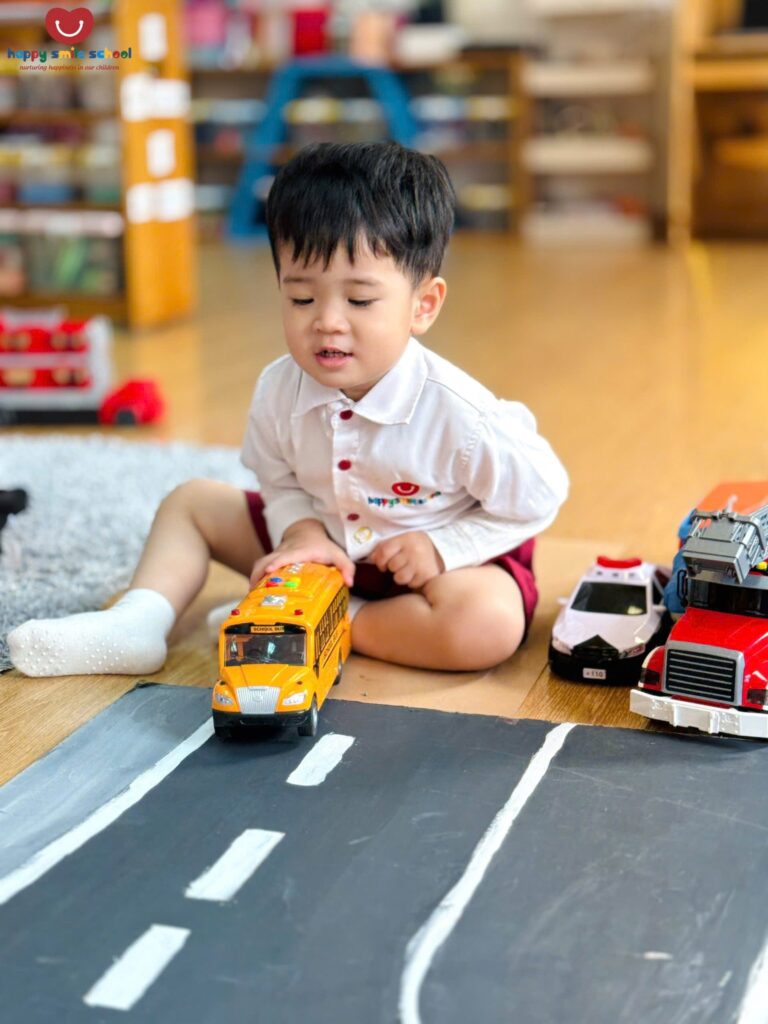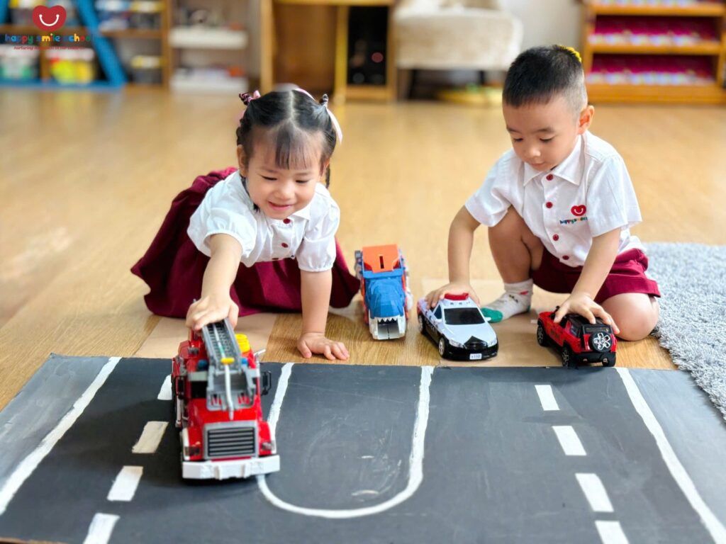 Trong hoạt động Push and Pull Brown Path, các bé 2 tuổi được khuyến khích vận động cơ thể để di chuyển thông qua những trải nghiệm đẩy – kéo sinh động trên con đường màu nâu quen thuộc ![]()