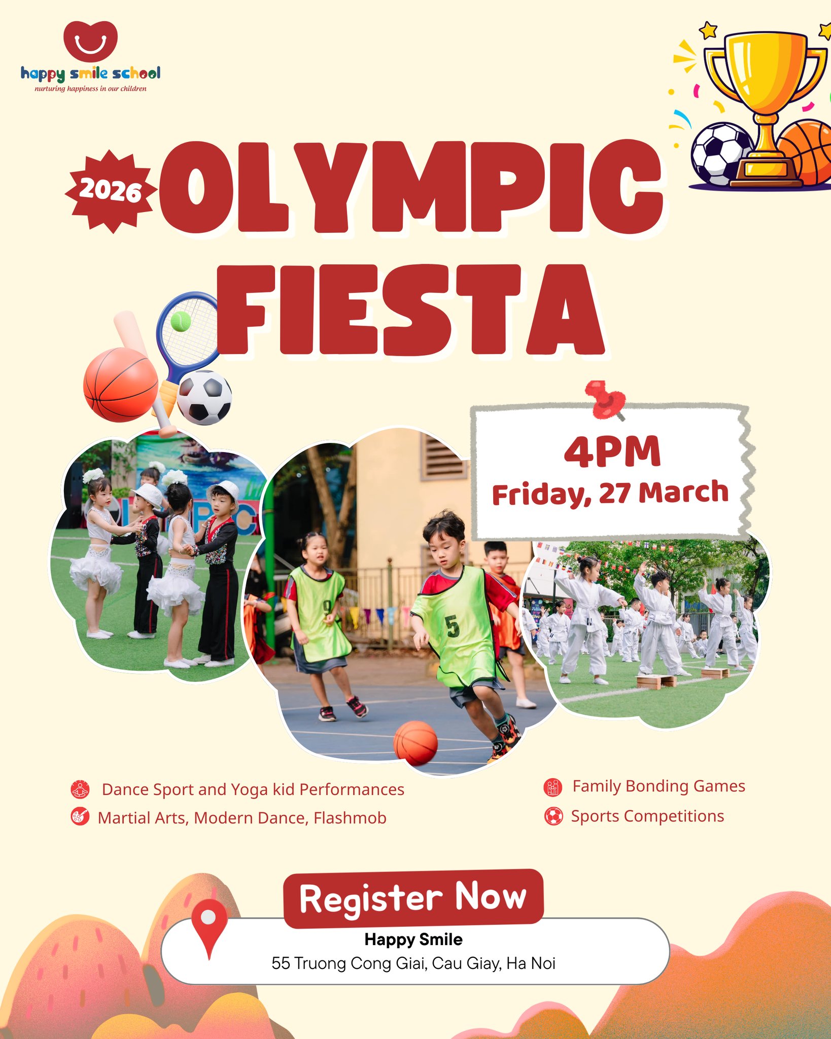 🏠 Địa điểm: Sân trường Happy Smile, 55 Trương Công Giai, Dịch Vọng Cầu Giấy.